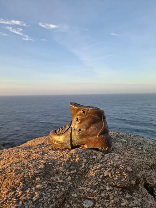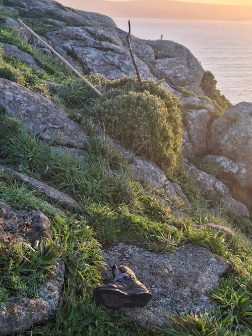Sráz pod majákem je pokrytý stovkami bot, poutnických holí a svršků včetně částí dámského spodního prádla. Dokonce tu někteří jedinci i pálili své staré šaty, ale to už je kvůli požárům zakázáno.