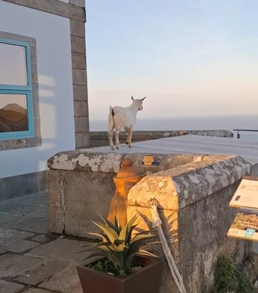 Už se objevují další poutníci. A kozy. Poskakují po stolcích na terase luxusní restaurace, takže výzva „ukaž kozy“ tady nabývá úplně jiných rozměrů.