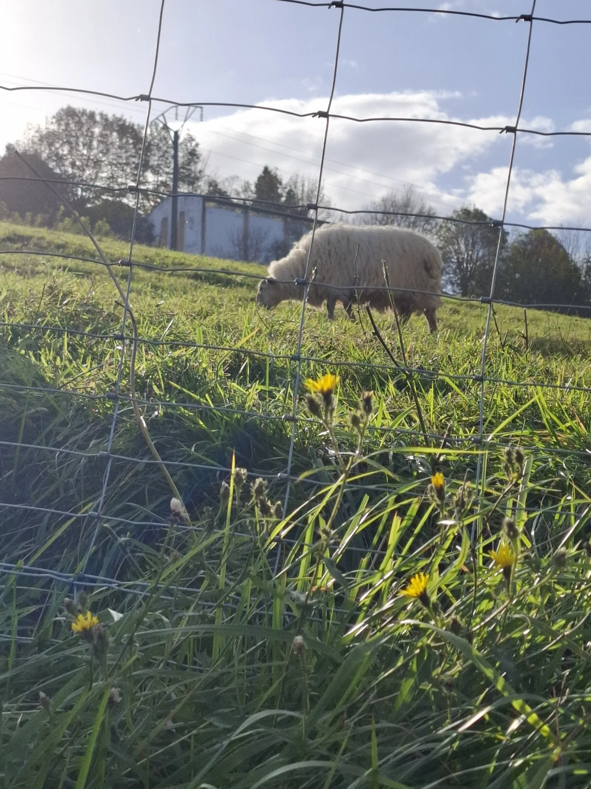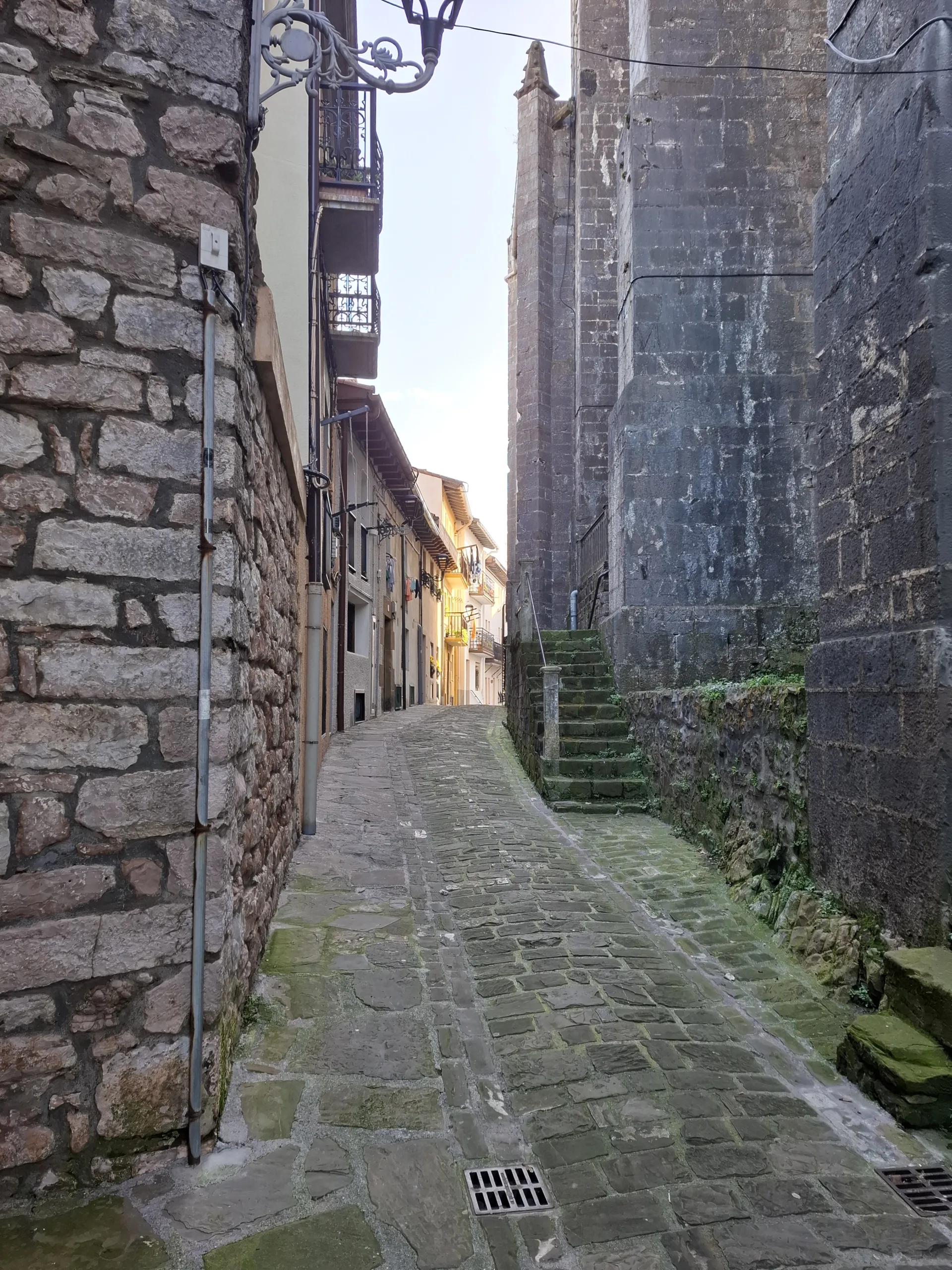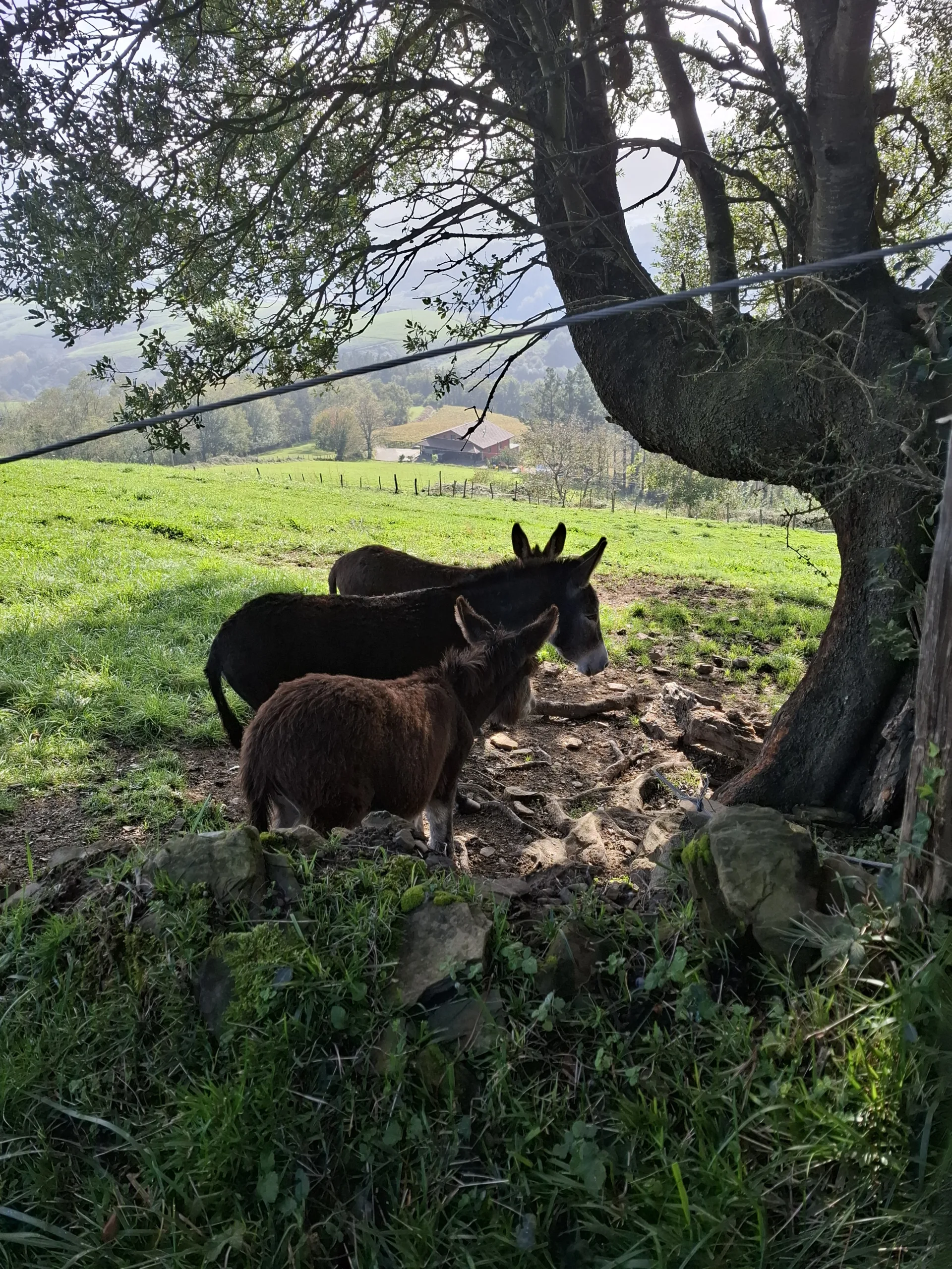 U cesty míjím malé vinice, stádečko ovcí a pak šipka Agroturismo Erlete Goikoa. Krásný albergue, tady by mohlo být razítko! Tak ťukám u dveří, otevře mi malá holčička a že někoho zavolá. Zavolala na mě bráchu – asi desetiletého. Ten mi důležitě sděluje, že tohle je privátní vchod, ať obejdu barák, tak je u Sv. Jakubu ten správný. No tak jo. Další zavřené dveře -ťukám -ti dva uličníci to oběhli vnitřkem a klučina mě důležitě vítá. A jestli chci ubytovat. Tak anglicky vysvětluji, že jenom štempl. „Venga a la recepción, señor“, rozumím recepci a opravdu mi do kredenciálu lupne razítko. A hned dostanu letáček, kdybych šel zase kolem Šikulka.