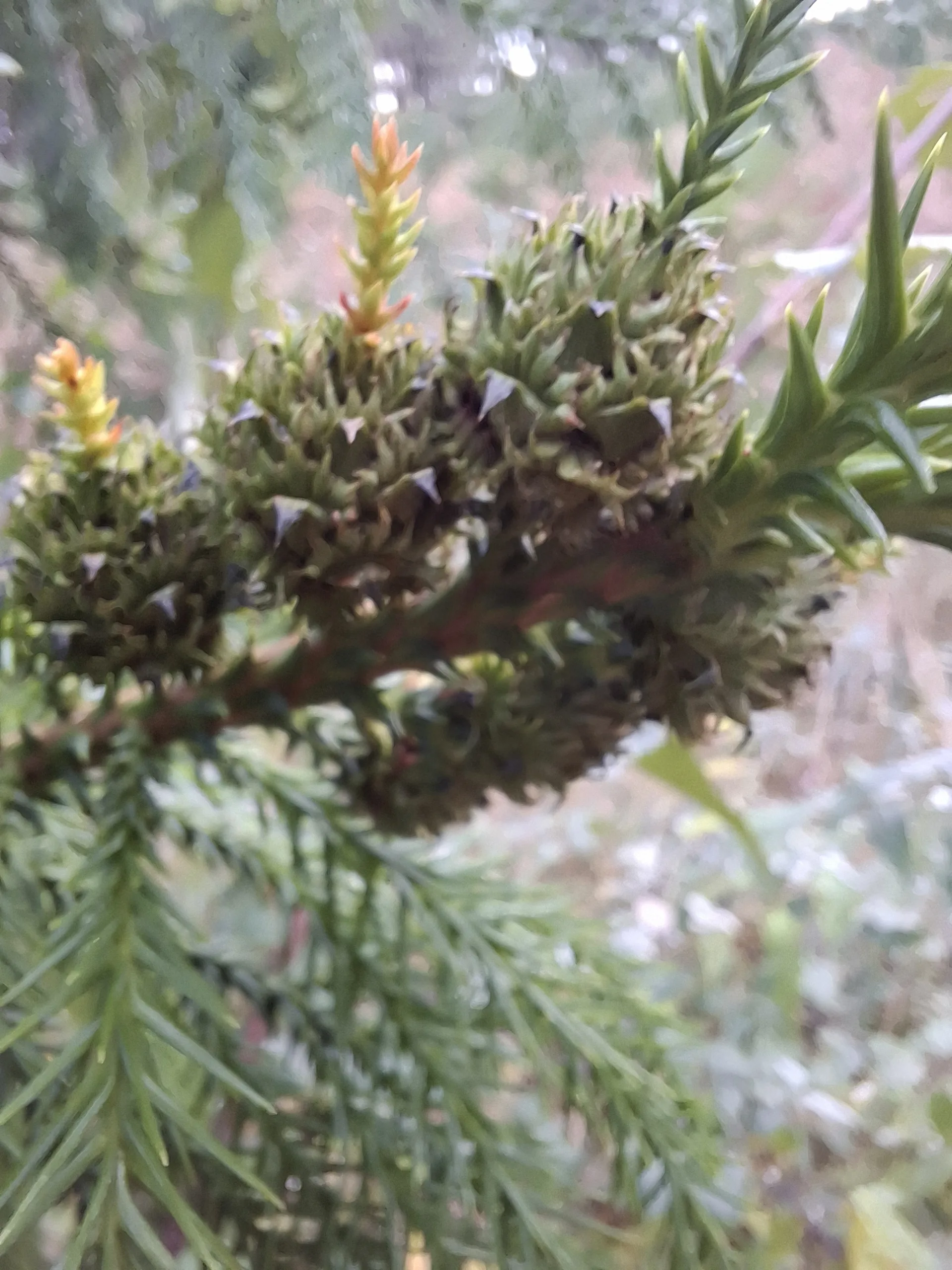 Trochu se mění vegetace. U plotu jim roste nádherný barvínek. Nad městečkem je najednou plná cesta červených ostnatých kuliček. Planika obecná mi říkají google lens. Prý jedlá. No testovat to nebudu. O kus krásné cedry a eukalypty. Malé, velké. Jejich vůně se mísí s vůní moře a pískovce. Nádherná vůně. Ta kdyby se dala strčit do lahviček!