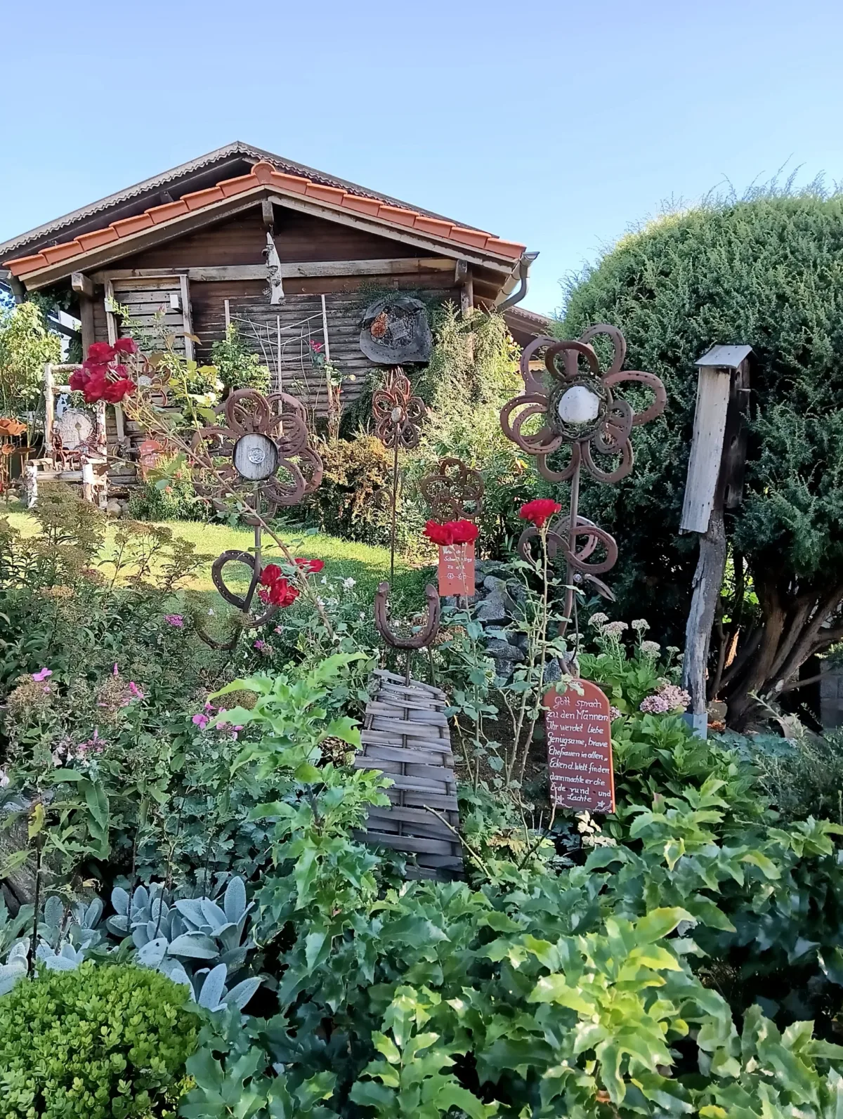 O vesnici dál ve Voggenzell si pro inspiraci fotím vyvýšené záhony na zahrádce. Žádné ohýbání, pletí cestiček, solidní truhlářské práce a dokonce s domečky pro čmeláky a jinou žoužel. Fakt dobrý.
